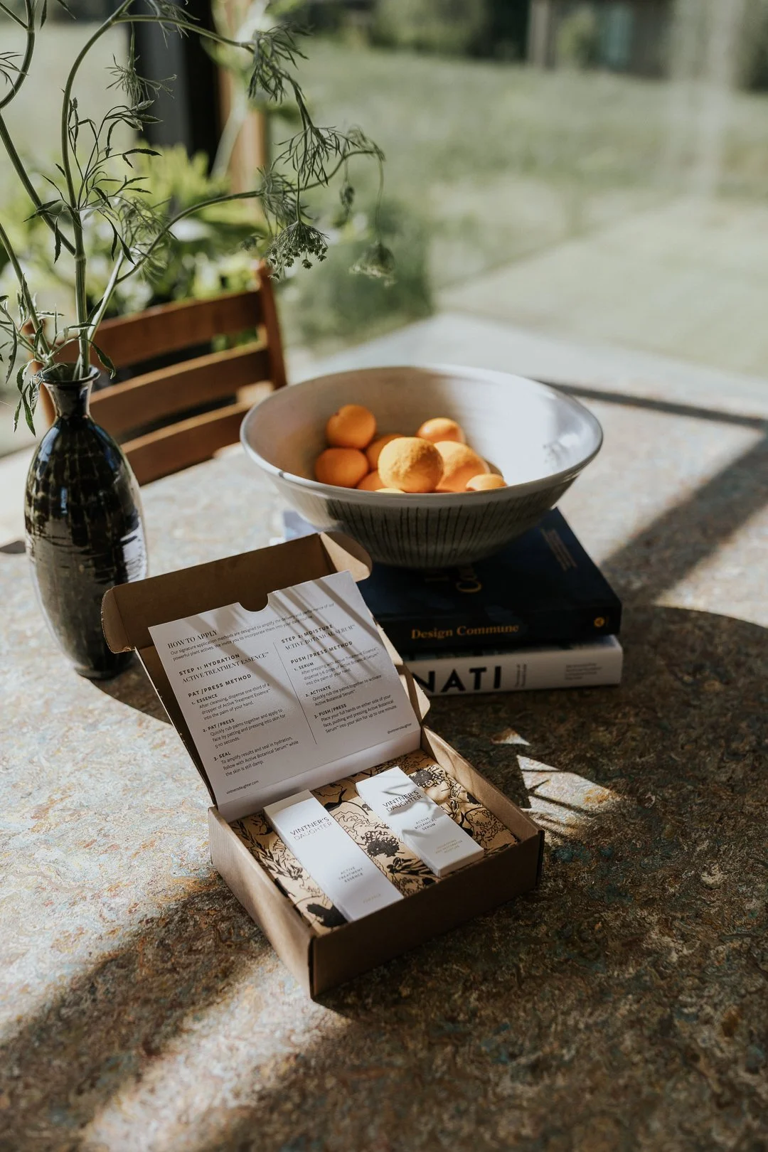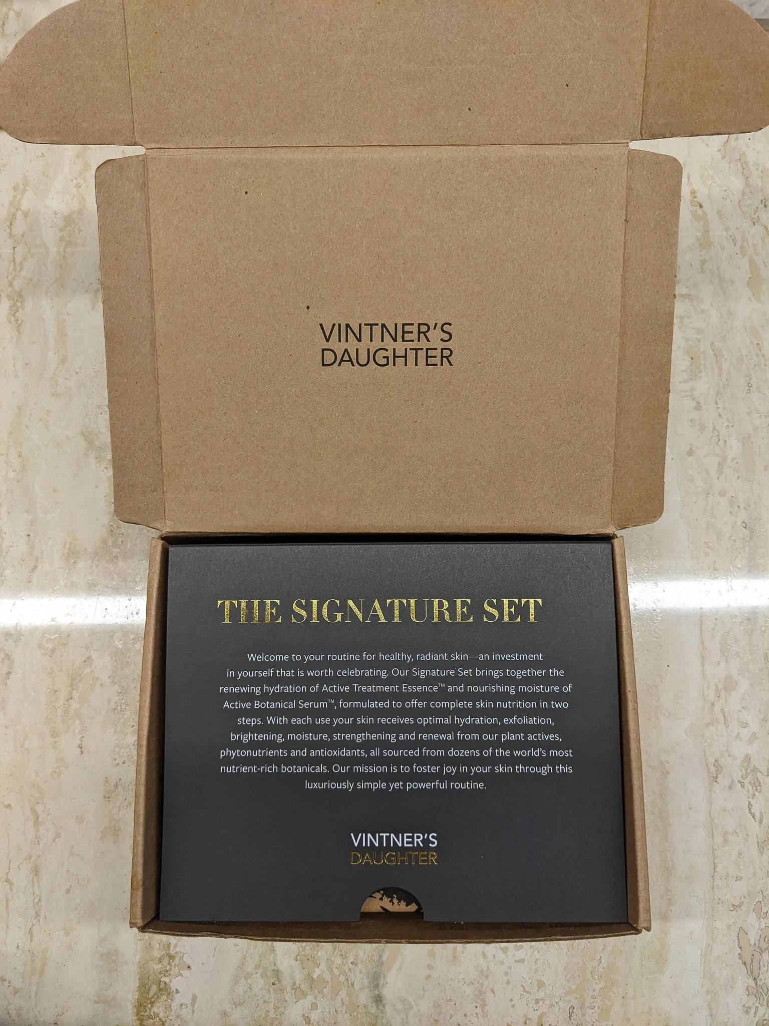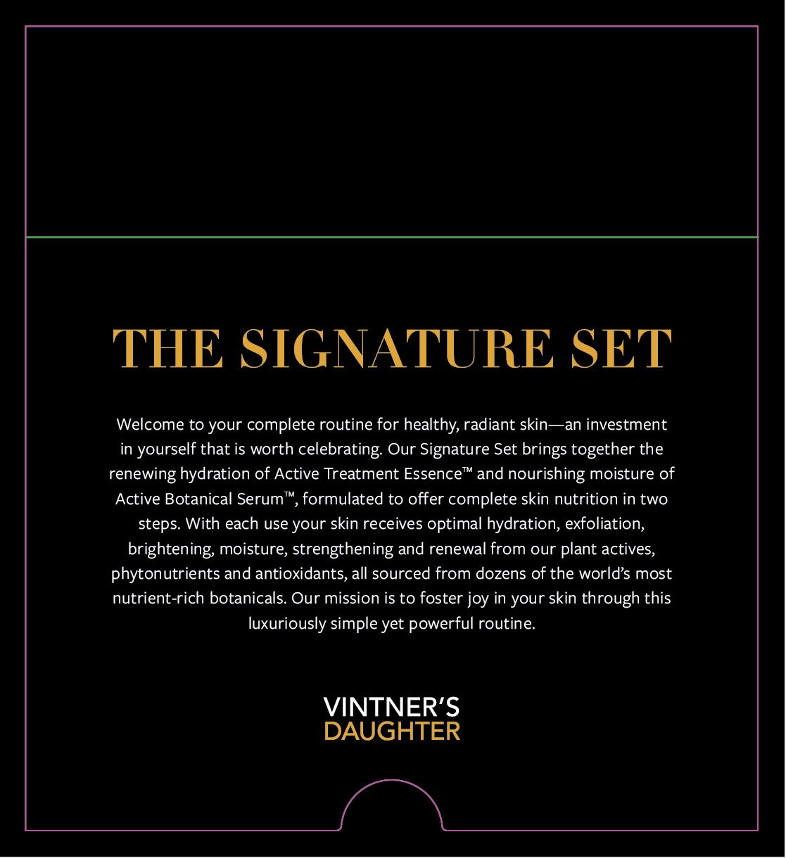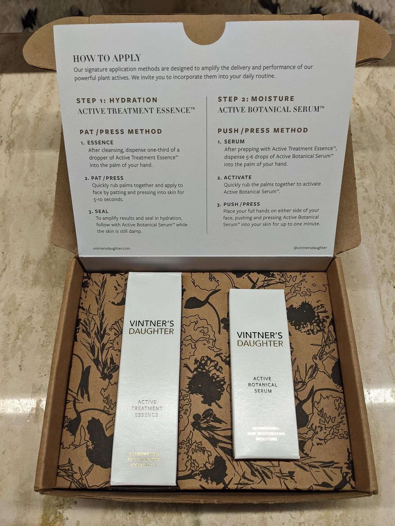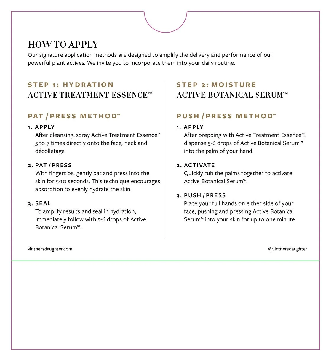 Vintner’s Daughter’s signature gold foil was used to print the title. The front of the insert has a brief introduction about the Set and the brand, while the back details out the trademarked methods of application.