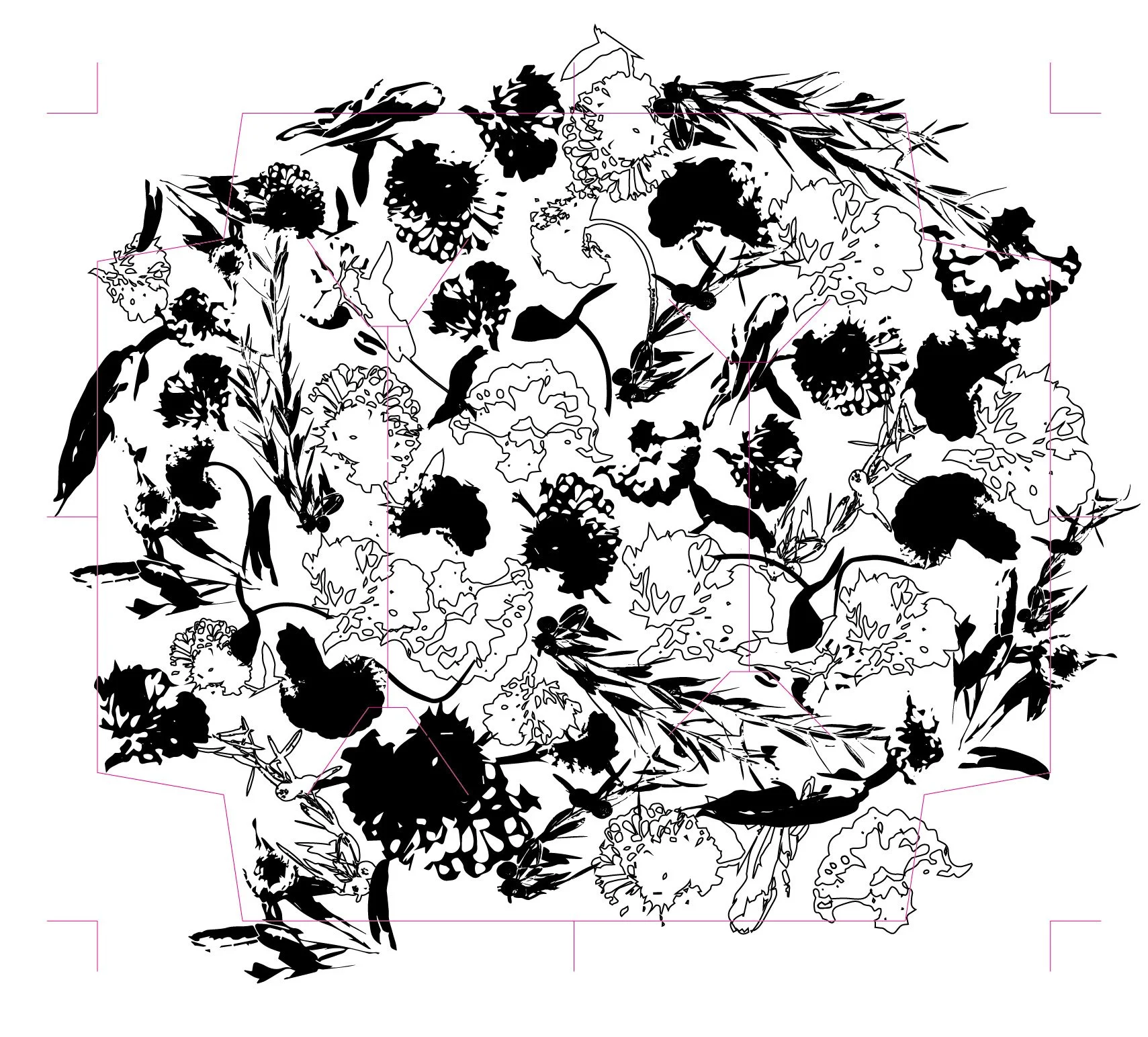 the filled in shapes and florals accentuate the design.