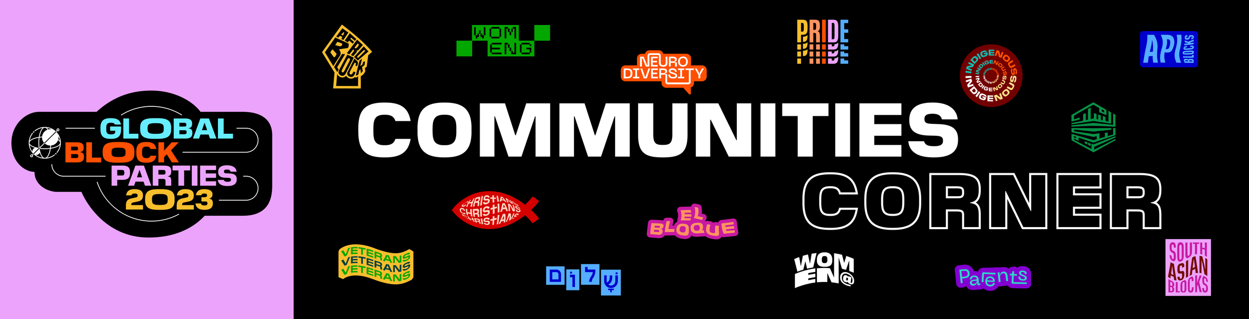 From a large banner for each of the party locations to call out Block’s ever-growing Communities groups to signage, stickers and physical collaterals, art files were prepped for print, proofed and produced.
