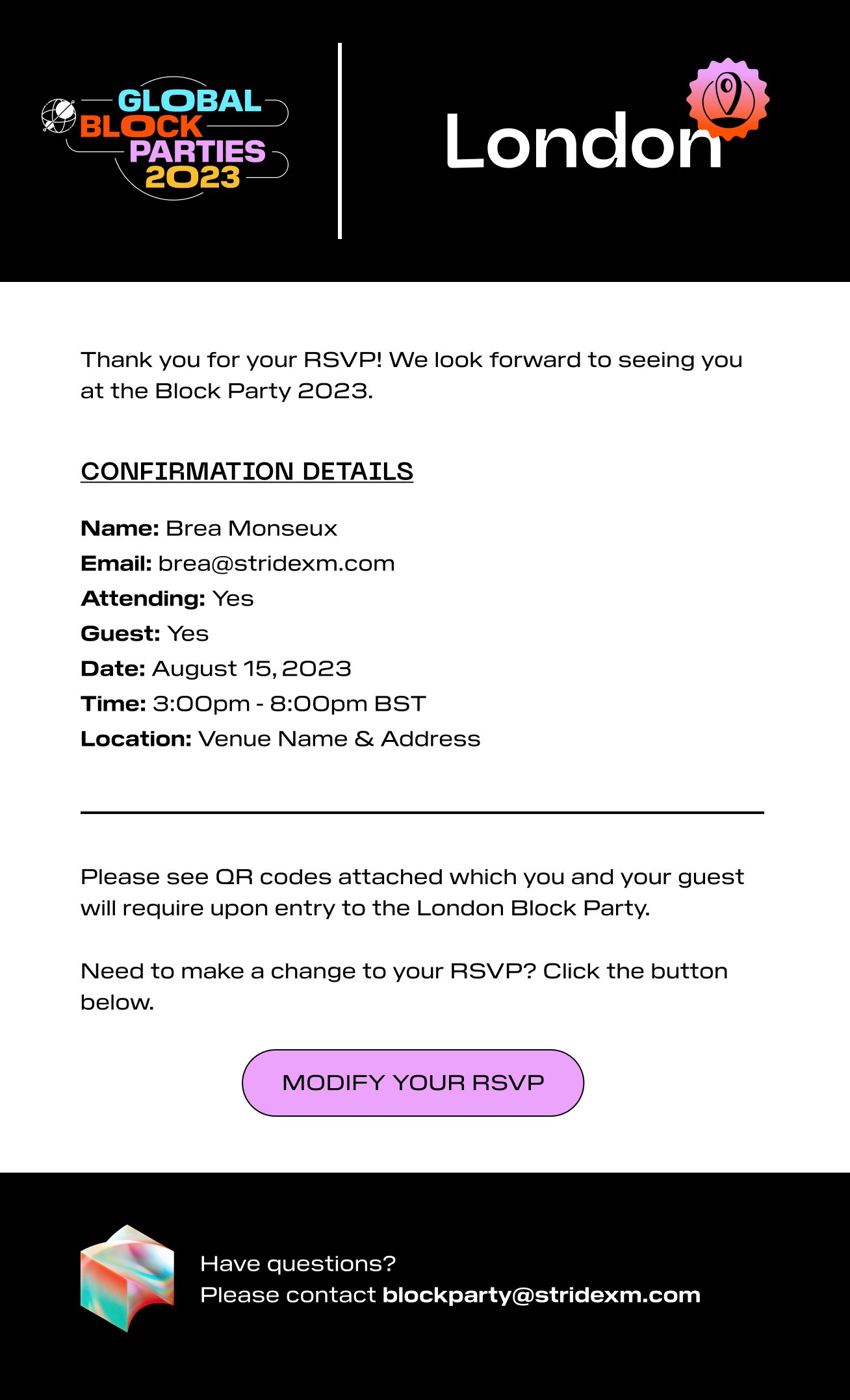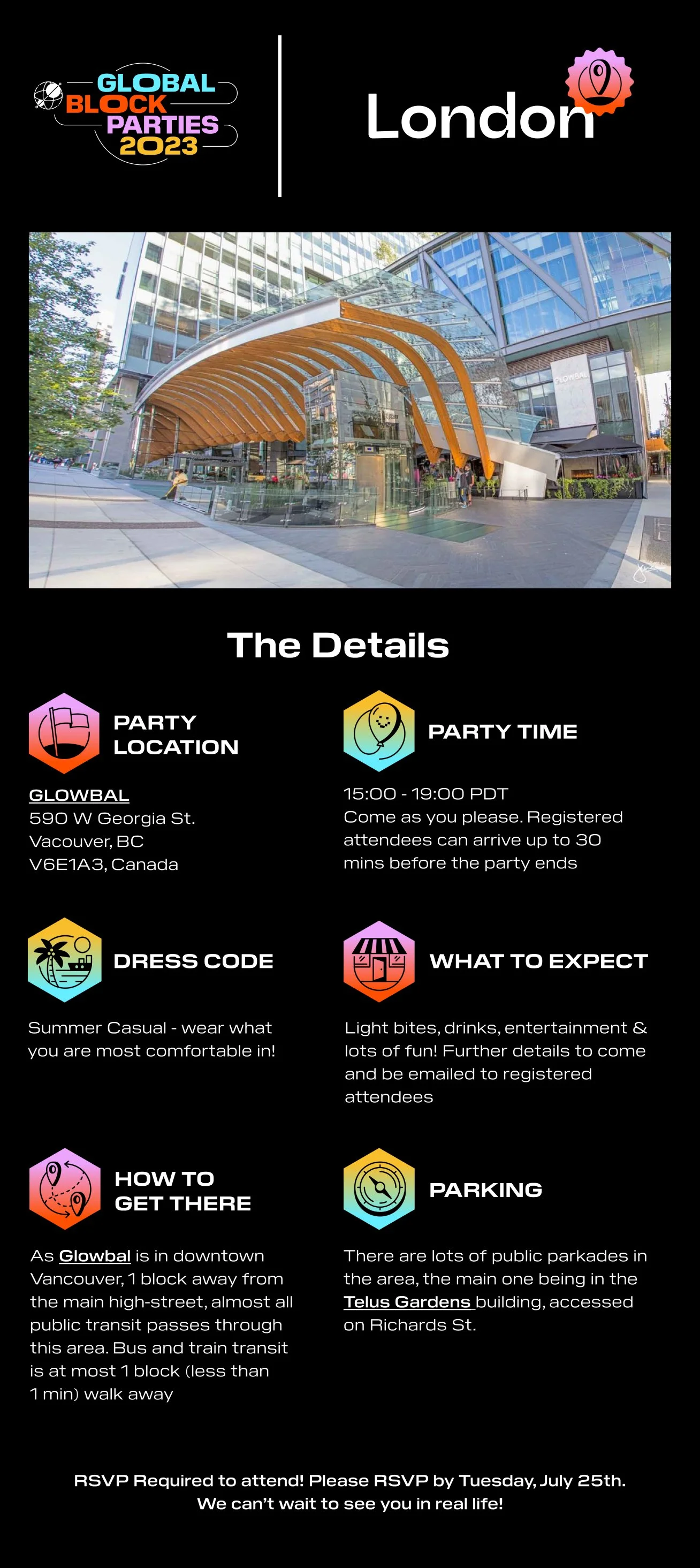Creating a visual identity for Block event titled “Global Block Parties 2023” – including a multi-platform digital experience, physical collateral and signage for the company-wide, international event.